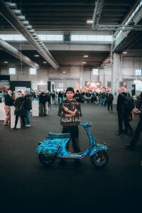 Con l’aiuto della Super mamma Prisca, che si barcamena ore alla guida in furgone, in attesa della maggiore età e della patente dell’auto e del suo “Fratello” Edoardo (inizialmente conosciuto nell’ambiente come Fischione o Tassello), inizia una fitta collaborazione e presenza anche ad eventi come il Kickstart! di Roma ed il Distretto Ruote Piccole al Motor Bike Expo. La dedizione, la competenza, oltre alle loro faccine di Merda estremamente simpatiche, unite all’entusiasmo e alla voglia di fare tipica della giovane età mi spingono a coinvolgerli in maniera massiva per la creazione di contenuti per i loro canali e per Scooterismo.it!
